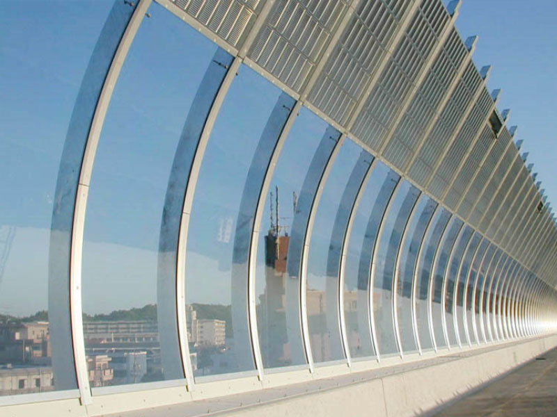 市政道路弧形聲屏障 弧形聲屏障分為頂部弧形聲屏障(小弧形),大弧形聲屏障,全封閉聲屏障(整體弧形)。