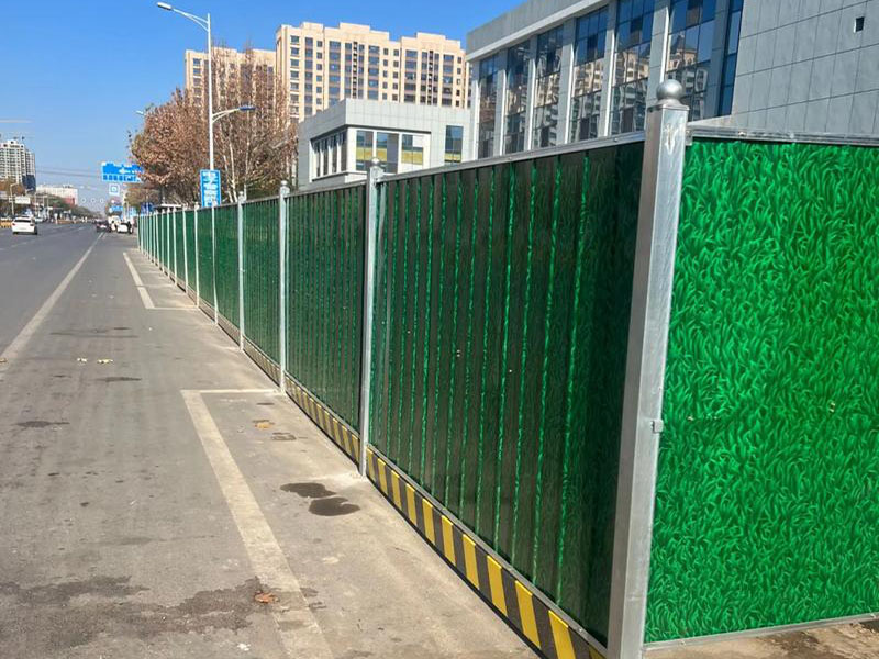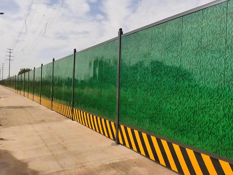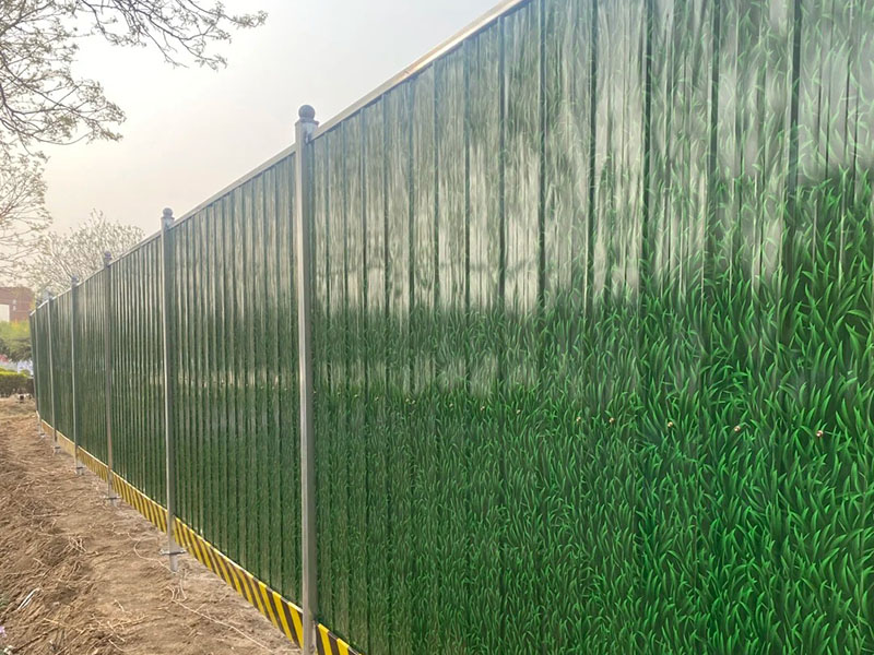 小草圍擋在彩鋼板上使用3D噴漆做出的仿小草圖案,仿真效果好,同時(shí)具有彩鋼圍擋的一切優(yōu)點(diǎn),外表更亮麗,立柱、上下?lián)醢?,面板與彩鋼圍擋相同,滿足客戶的差異化需求。